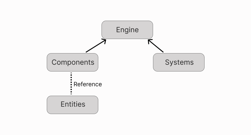 The engine is the part of the scene that sits in the middle and manages all of the other parts. It determines what entities are rendered and how players interact with them. It also coordinates what functions from systems are executed and when.